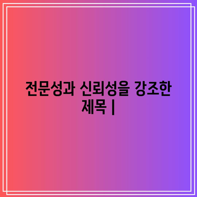 전문성과 신뢰성을 강조한 제목은 단순히 눈길을 끄는 것 이상의 의미를 지닙니다. 특히 정보 제공이나 서비스를 제공하는 분야에서, 타겟 고객에게 신뢰감을 주는 것은 매우 중요합니다. 신뢰는 고객이 당신의 정보를 믿고, 당신의 서비스를 선택하도록 이끄는 핵심 요소입니다.