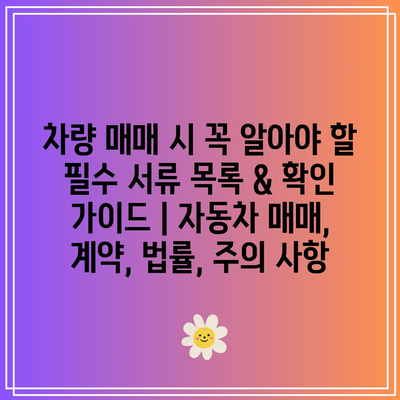 차량 매매 시 꼭 알아야 할 필수 서류 목록 & 확인 가이드 | 자동차 매매, 계약, 법률, 주의 사항